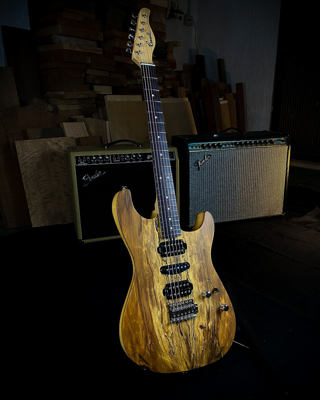 Inspired by the S-style, but with a distinctive Canalli design, featuring an improved access to the upper frets thanks to a strategic cutaway.