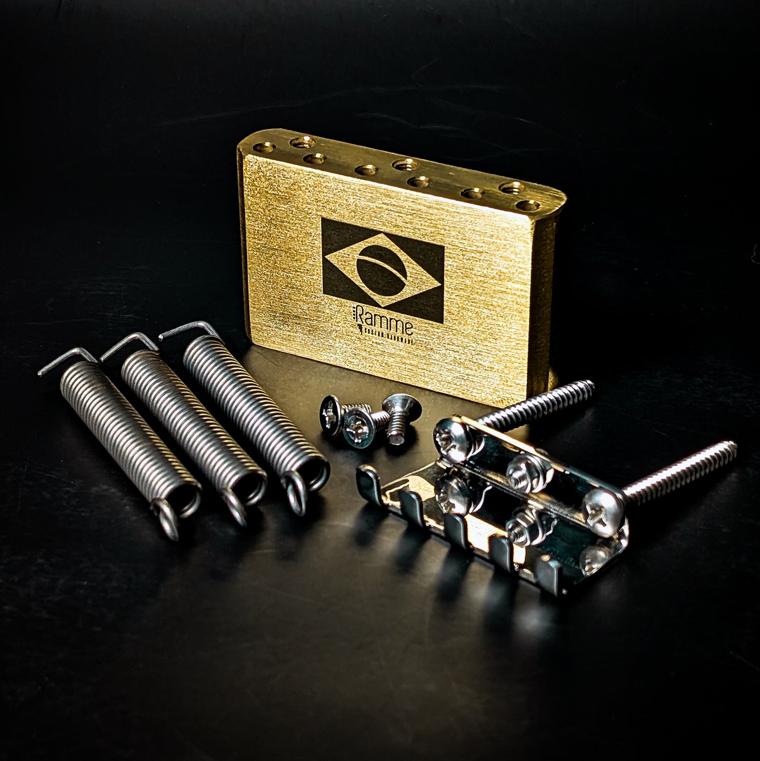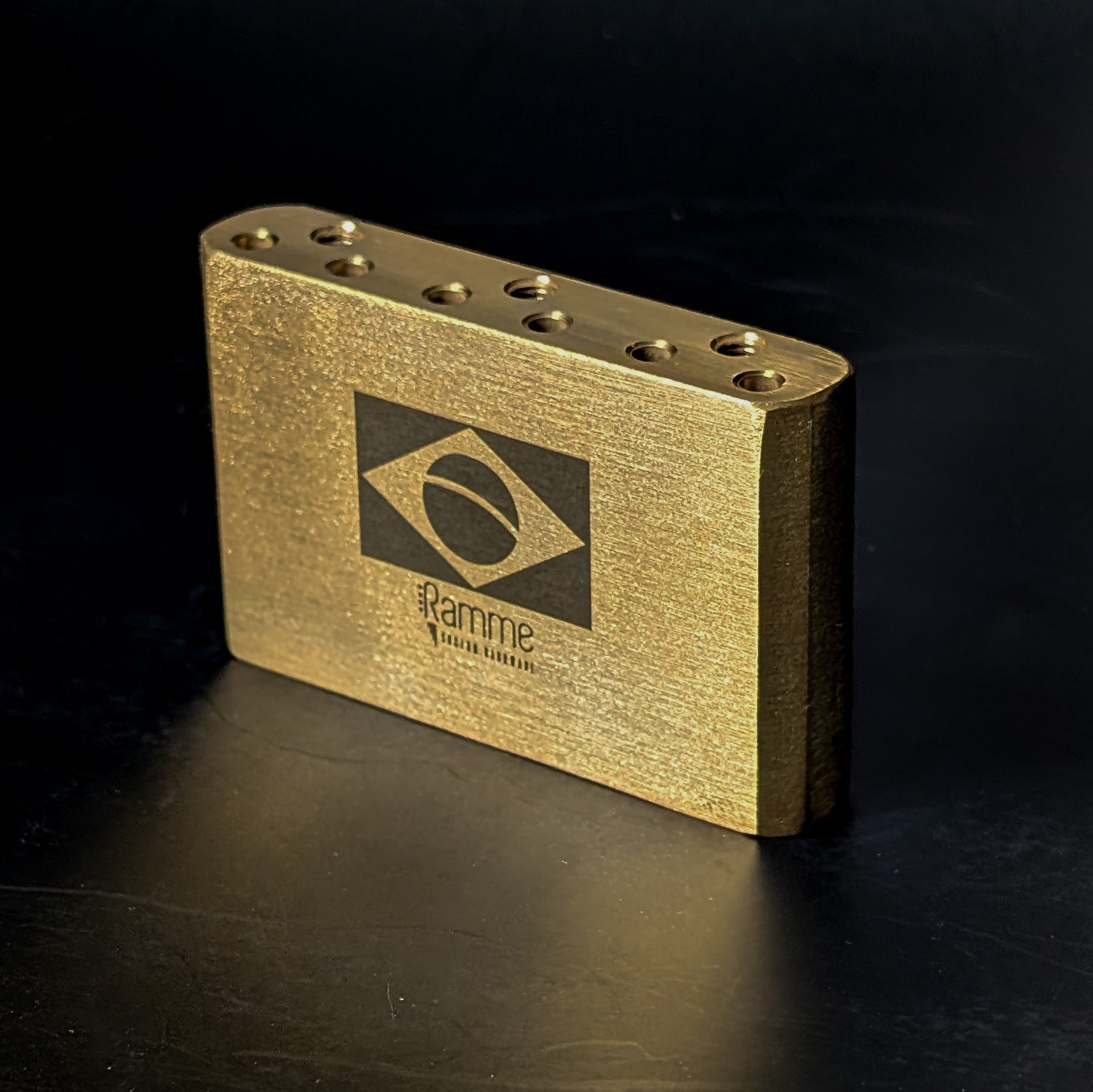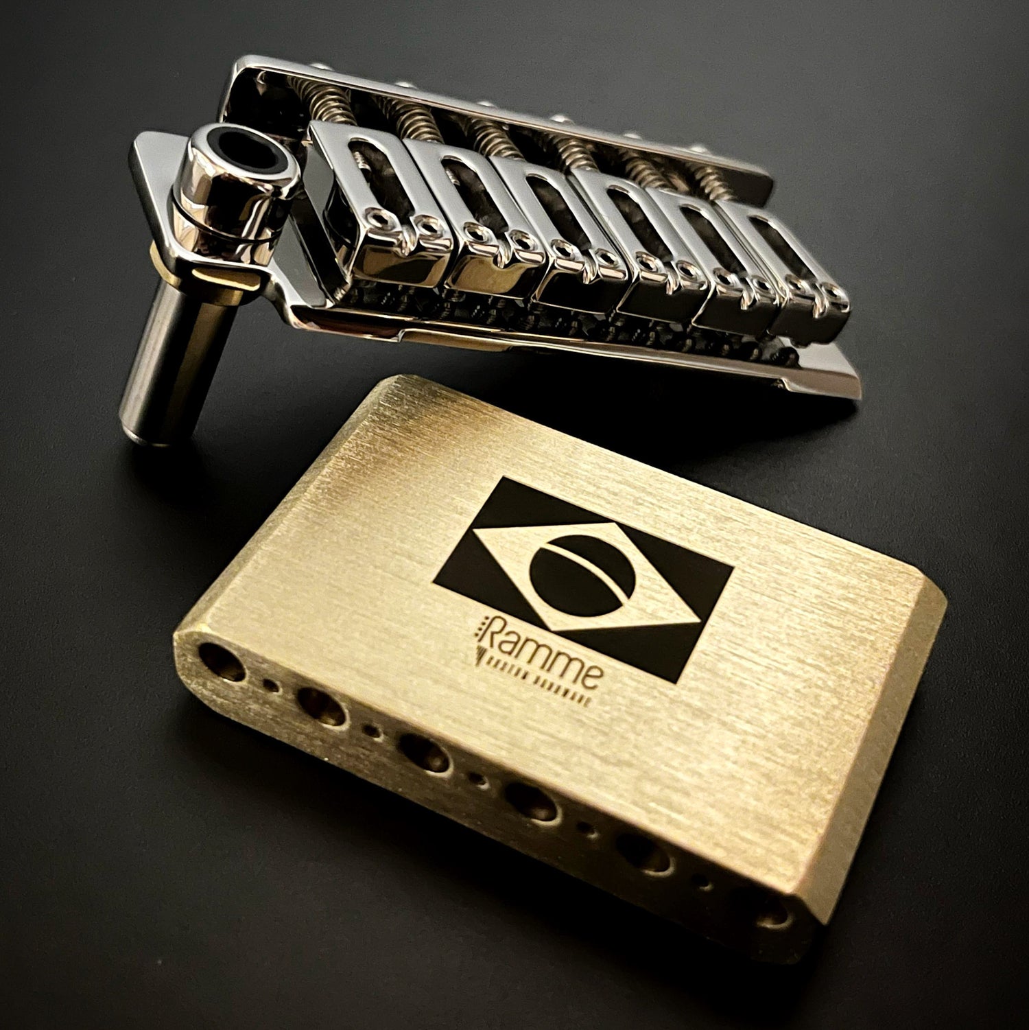 Ramme tremolo bridges feature machined brass blocks, offering superior tonal quality and sustain compared to the injected Zamac or other materials commonly used by other brands.