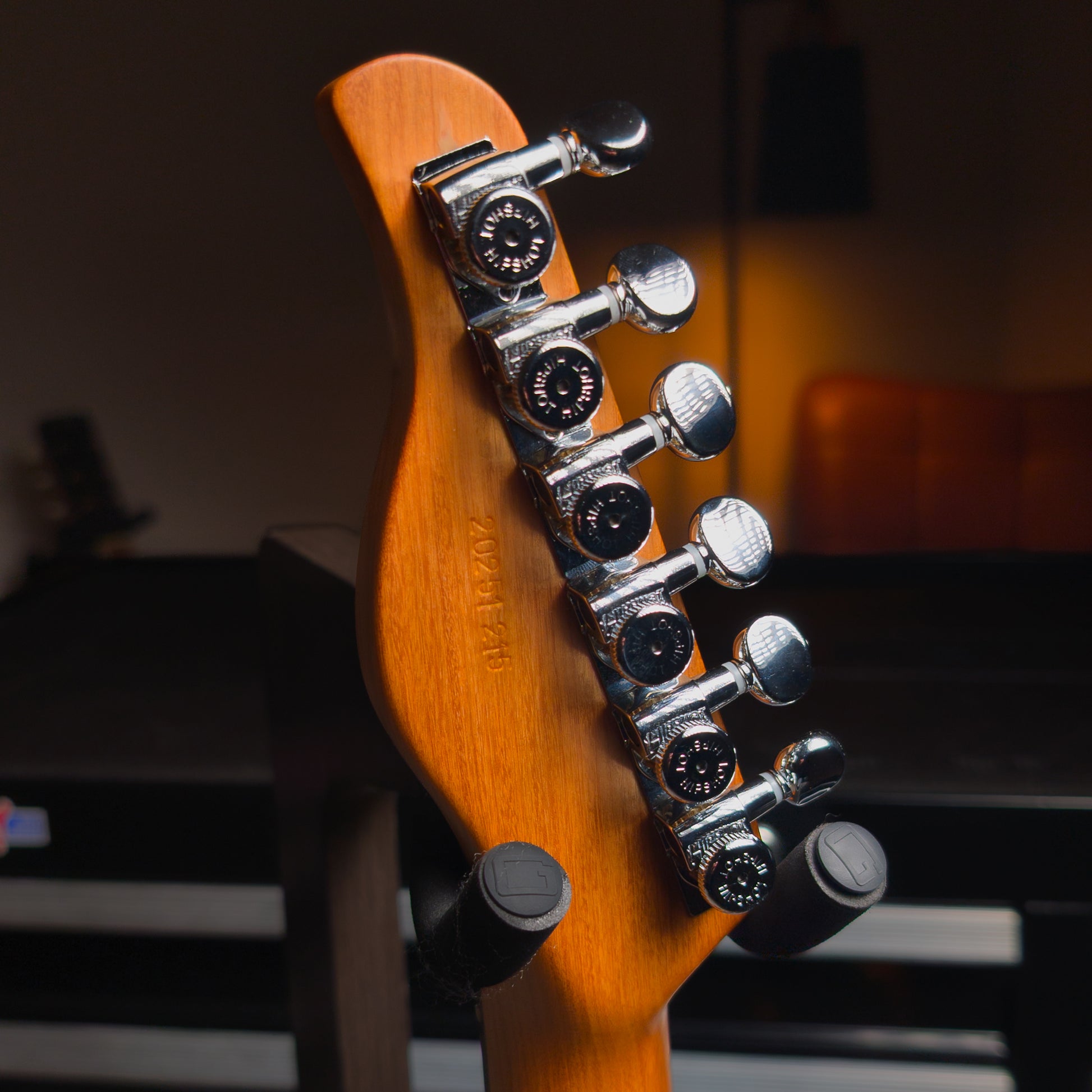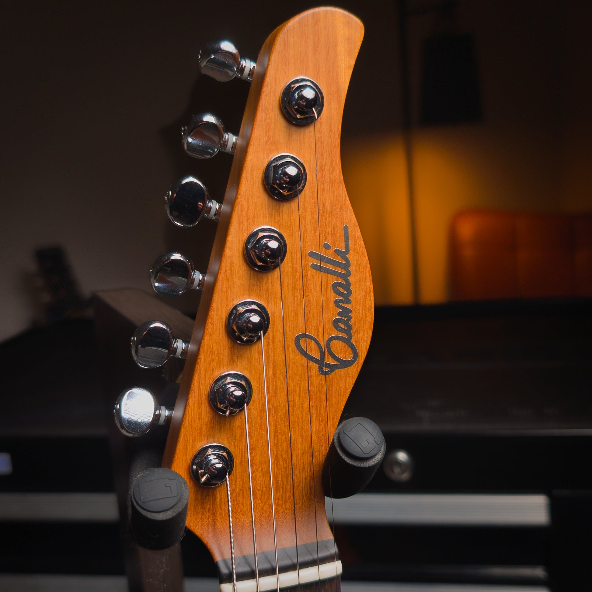 The Canalli CT features a revolutionary spoke wheel truss rod, offering unprecedented control over neck curvature. This innovative design allows for precise adjustments, ensuring optimal playability and tone. With a simple turn of the wheel, you can fine-tune your instrument to perfection, eliminating the need for complex adjustments and specialized tools. This direct access to the truss rod also prevents common issues like stripped screw heads, enhancing the instrument's longevity. By eliminating the traditional headstock cavity, this design has increased the headstock's rigidity, resulting in improved sustain and reduced unwanted vibrations. Additionally, the new truss rod configuration reduces stress on the headstock, minimizing the risk of cracks and extending the instrument's lifespan.