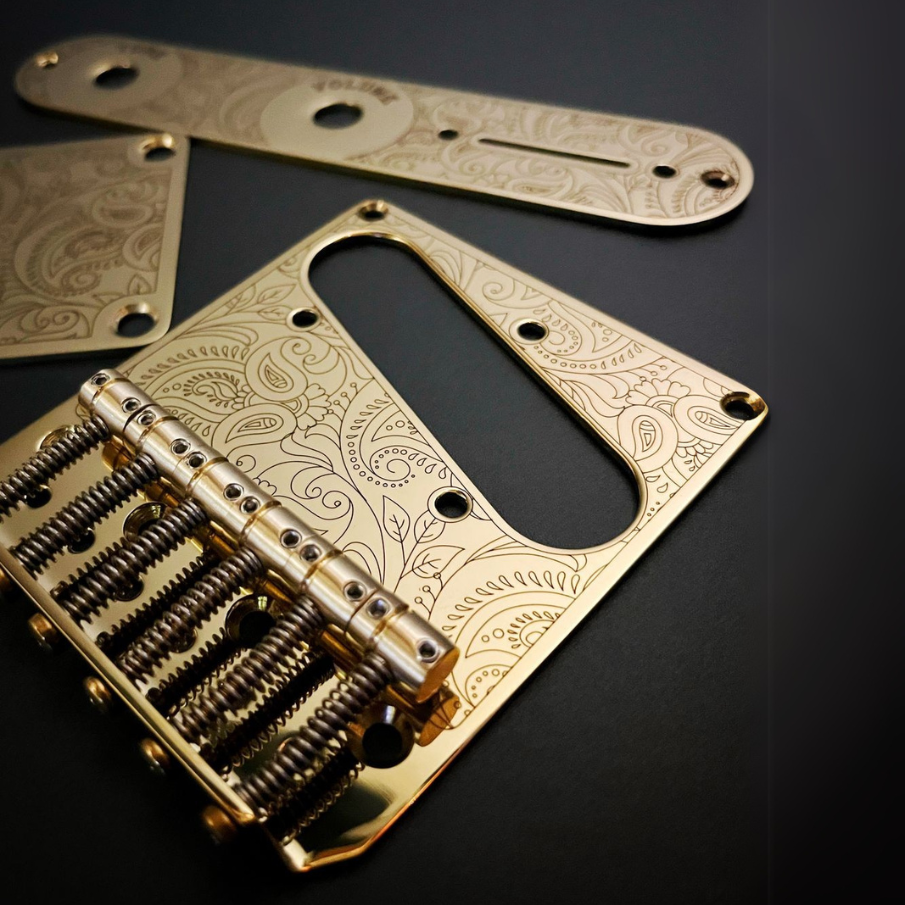 But what truly sets this kit apart is the stunning Paisley laser engraving adorning the bridge, control plate, and neck plate. This intricate design adds a touch of classic cool and personalized elegance to your instrument, making it stand out from the crowd.