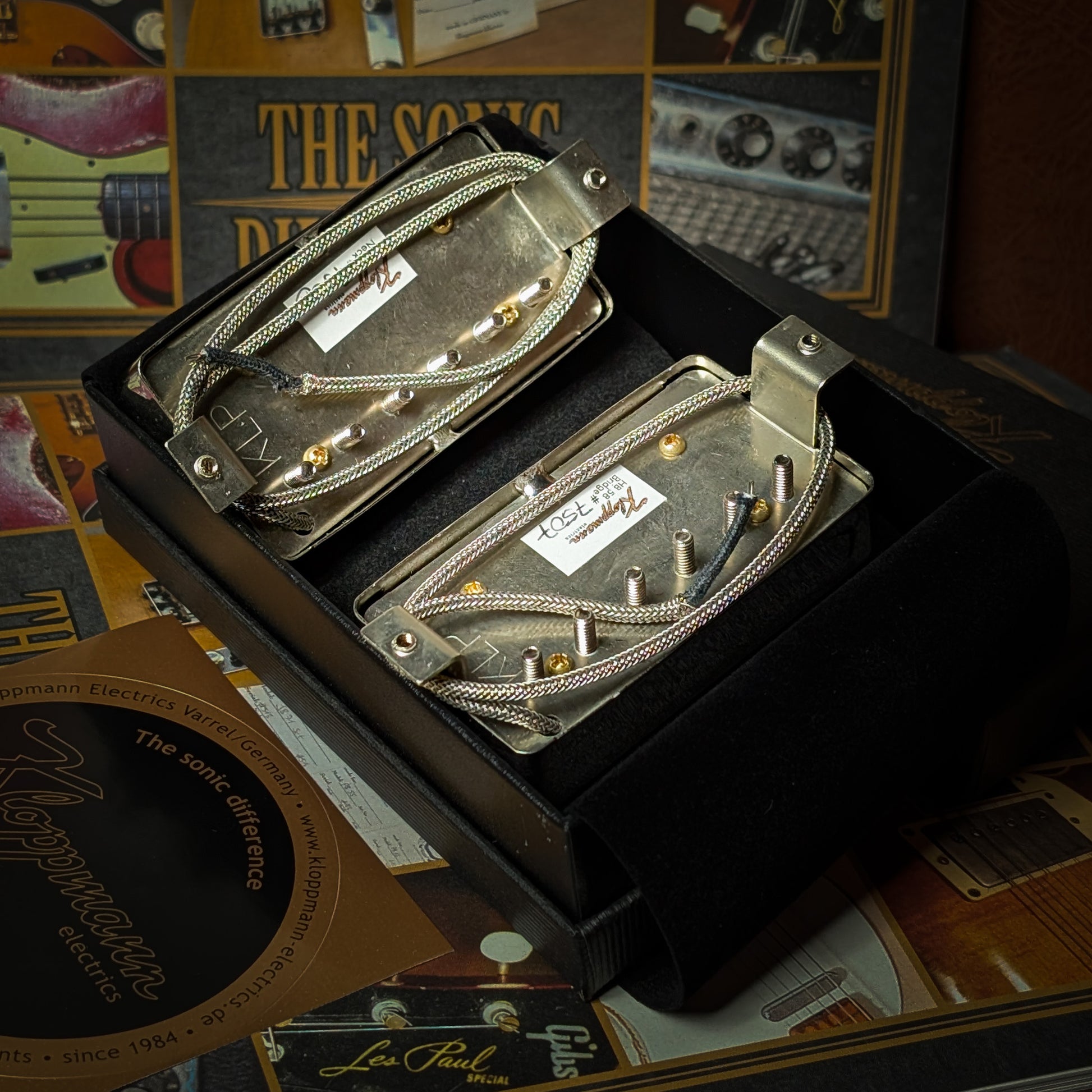Capture the legendary clarity and refined bite of a '58 Les Paul Standard with the Kloppmann HB 58 Set. Inspired by Peter Weihe's iconic tone, these pickups deliver a sparkling transparency in the neck position, allowing every nuance of your playing to shine through without sacrificing rich, fundamental warmth. The bridge pickup offers a tighter, more focused attack, reminiscent of the best '50s Blackguard Teles, providing that articulate stringency perfect for cutting through the mix. Imagine the elegant clarity of Dickey Betts' 'Jessica' sound – that's the sonic landscape these pickups unlock.