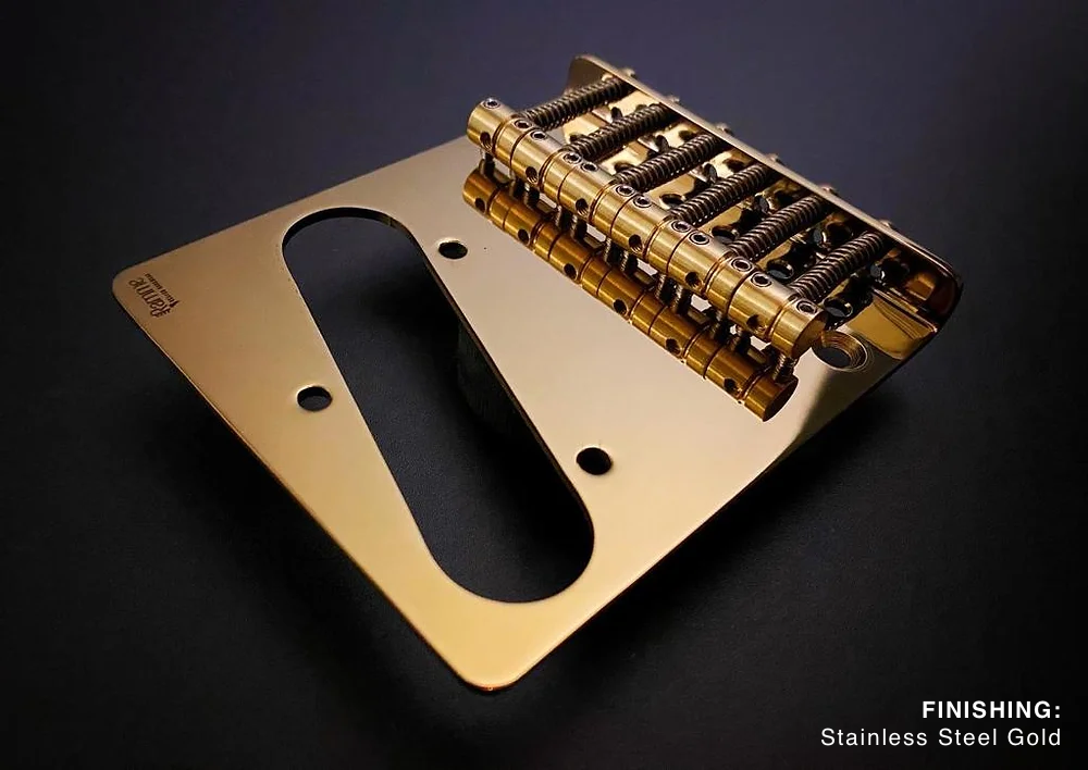 It also has 6 brass saddles that provide a precise adjustment of the octaves, maintaining the traditional sound characteristics of brass. In addition, it has some design improvements compared to what is available in the market, offering a more suitable placement for accommodating the strings on the saddles, minimizing the chances of them to going off from the saddle as well as it does include additional design updates to allow the strings do not pass too close to the springs, helping the exchange of strings and so that these leave directly from the cavity to the saddle, eliminating unnecessary tension.