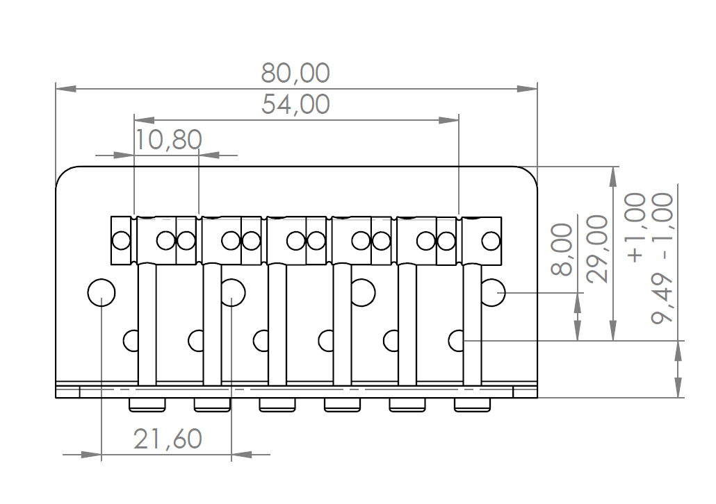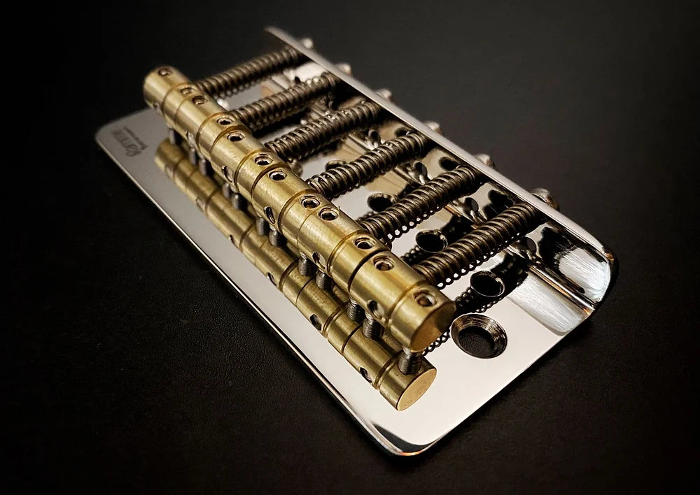 It also has 6 brass saddles that provide a precise adjustment of the octaves, maintaining the traditional sound characteristics of brass. In addition, it has some design improvements compared to what is available in the market, offering a more suitable placement for accommodating the strings on the saddles, minimizing the chances of them to going off from the saddle as well as it does include additional design updates to allow the strings do not pass too close to the springs, helping the exchange of strings and so that these leave directly from the cavity to the saddle, eliminating unnecessary tension.