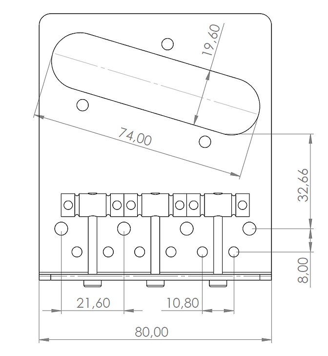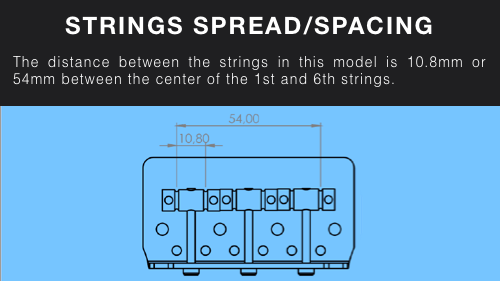 Distance Between The Center of The Saddles ("Strings Spacing"): 10.8 mm