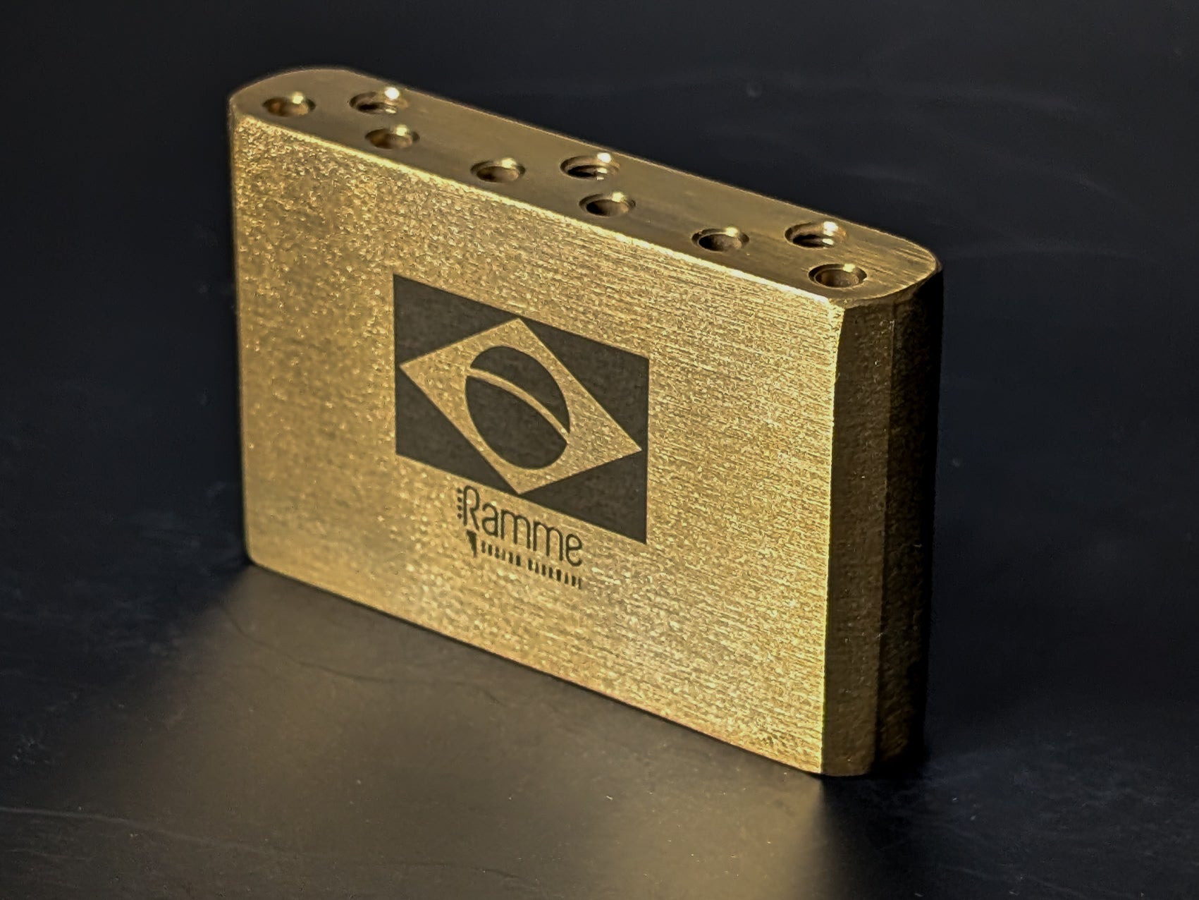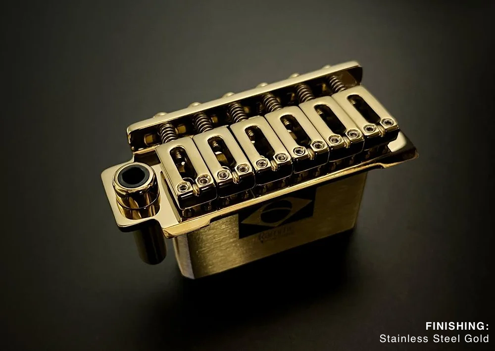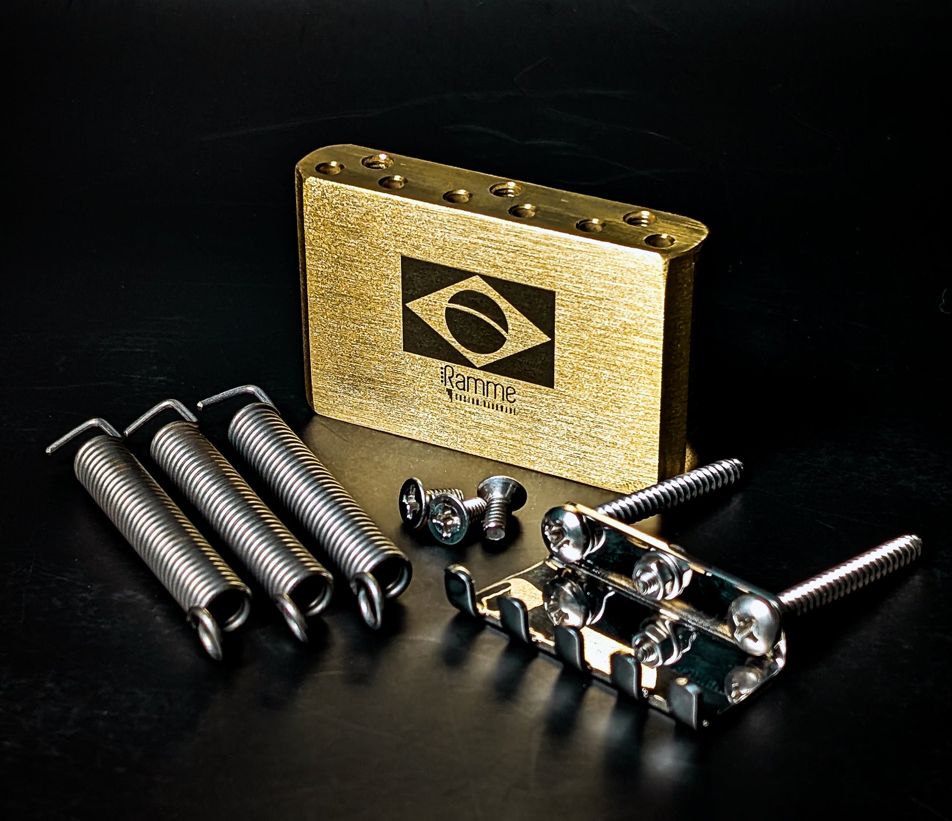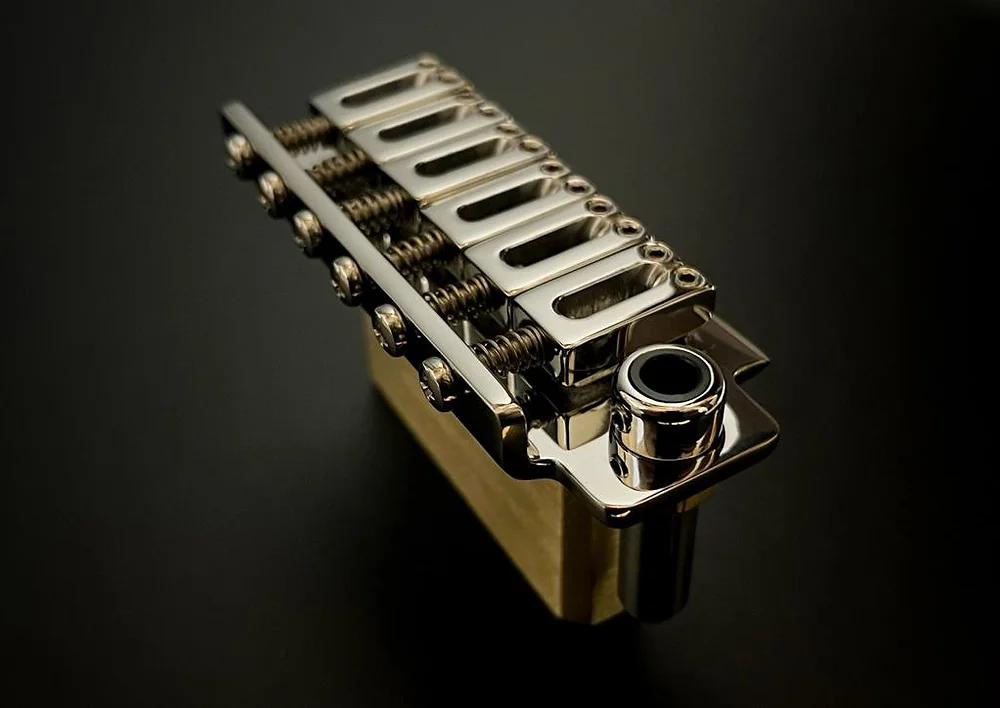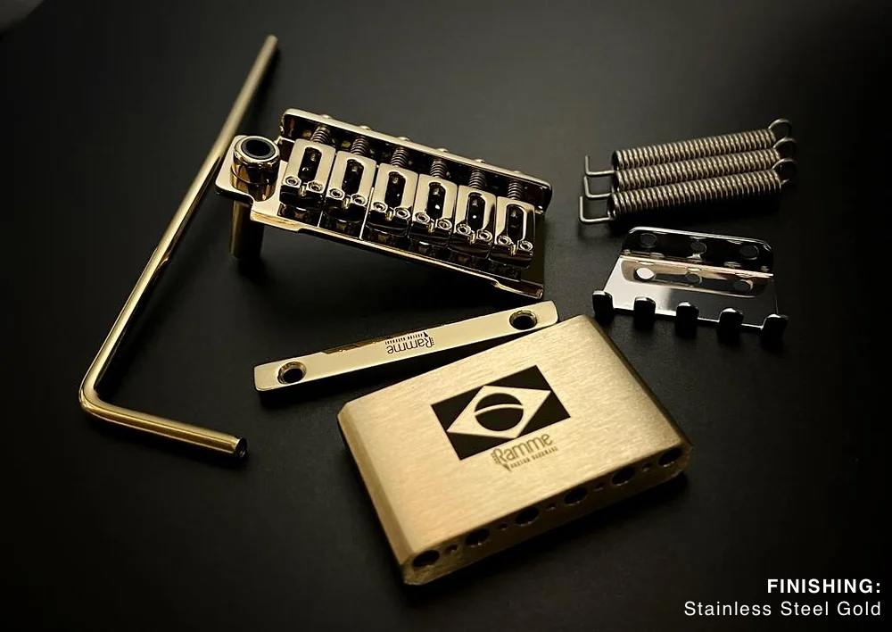 Ramme tremolo bridges feature machined brass blocks, offering superior tonal quality and sustain compared to the injected Zamac or other materials commonly used by other brands.