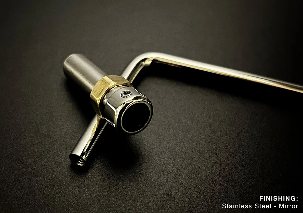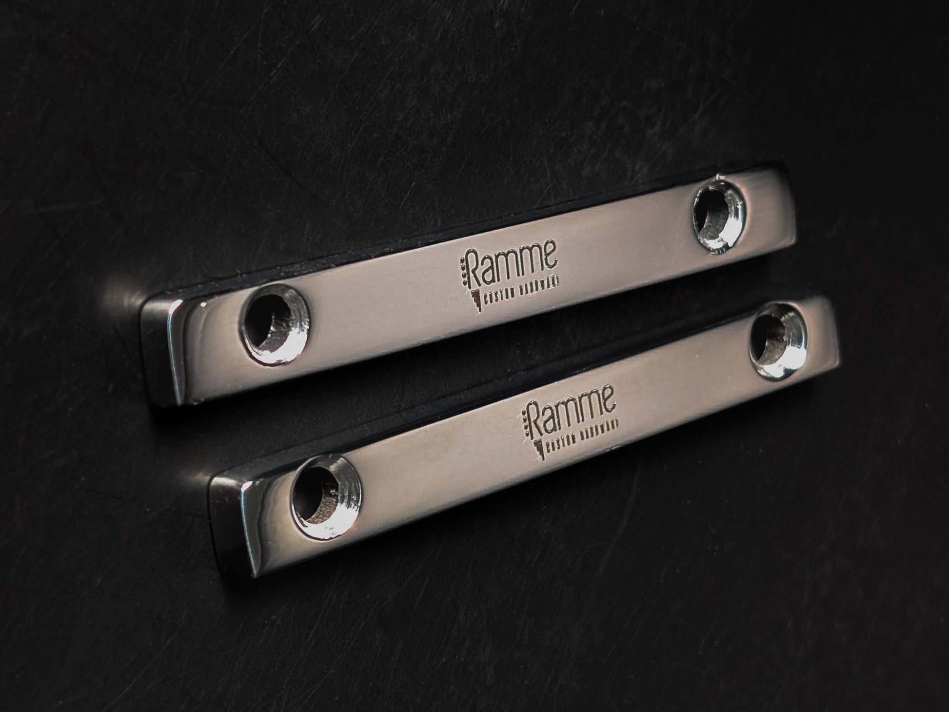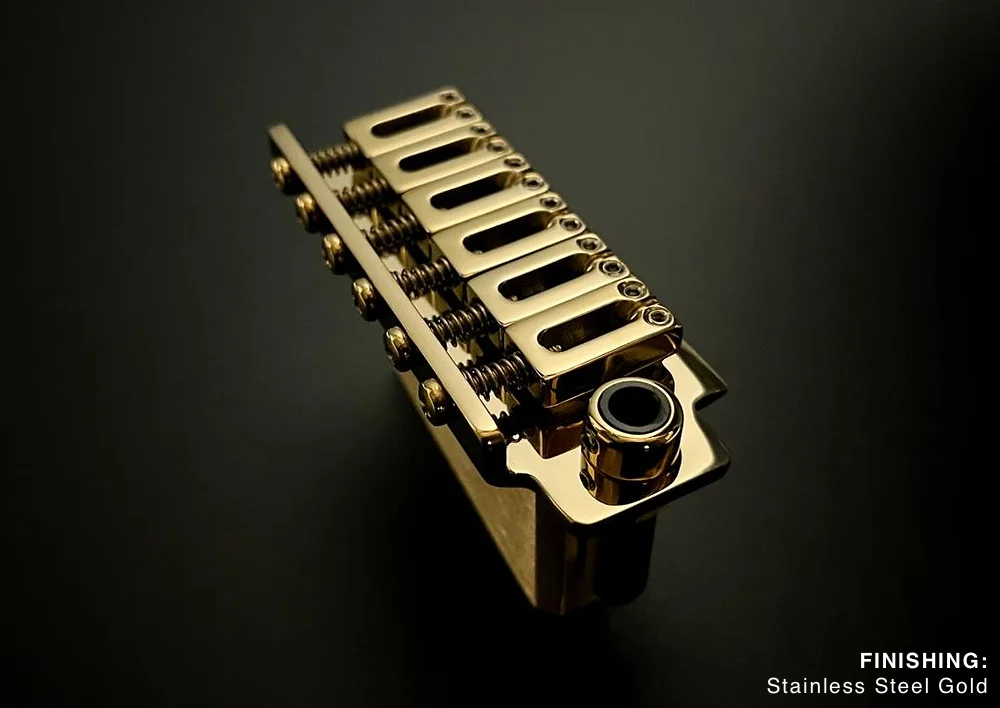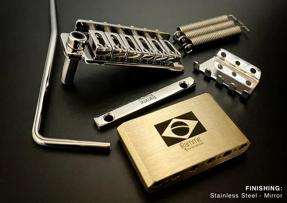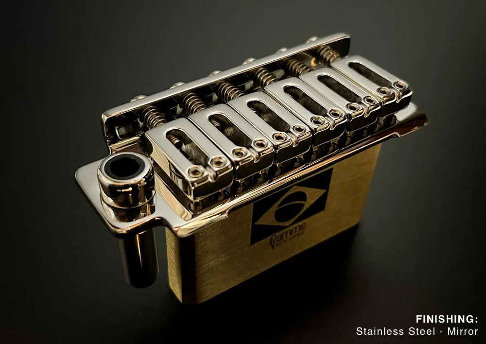 Ramme's guitar bridges feature manually polished stainless steel components, offering a sleek, premium finish. Unlike the chrome plating used by some other brands, this meticulous process ensures lasting beauty and durability.